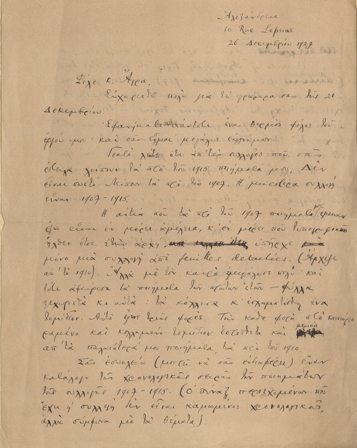 0003 (2205) - Draft letter by C. P. Cavafy to Tellos Agras