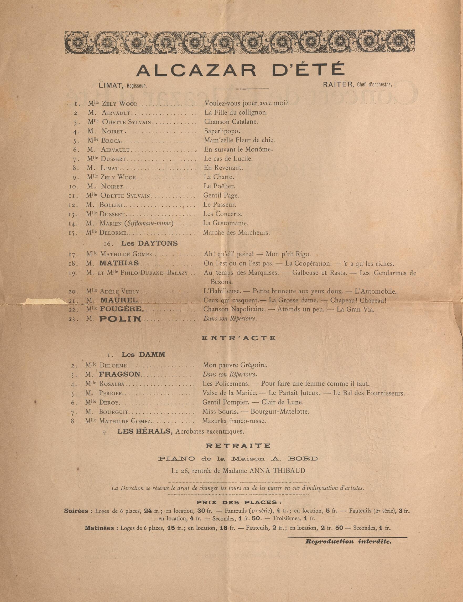 0016 (2137) - Θεατρικό πρόγραμμα “Concert de l’Alcazar d’Été”