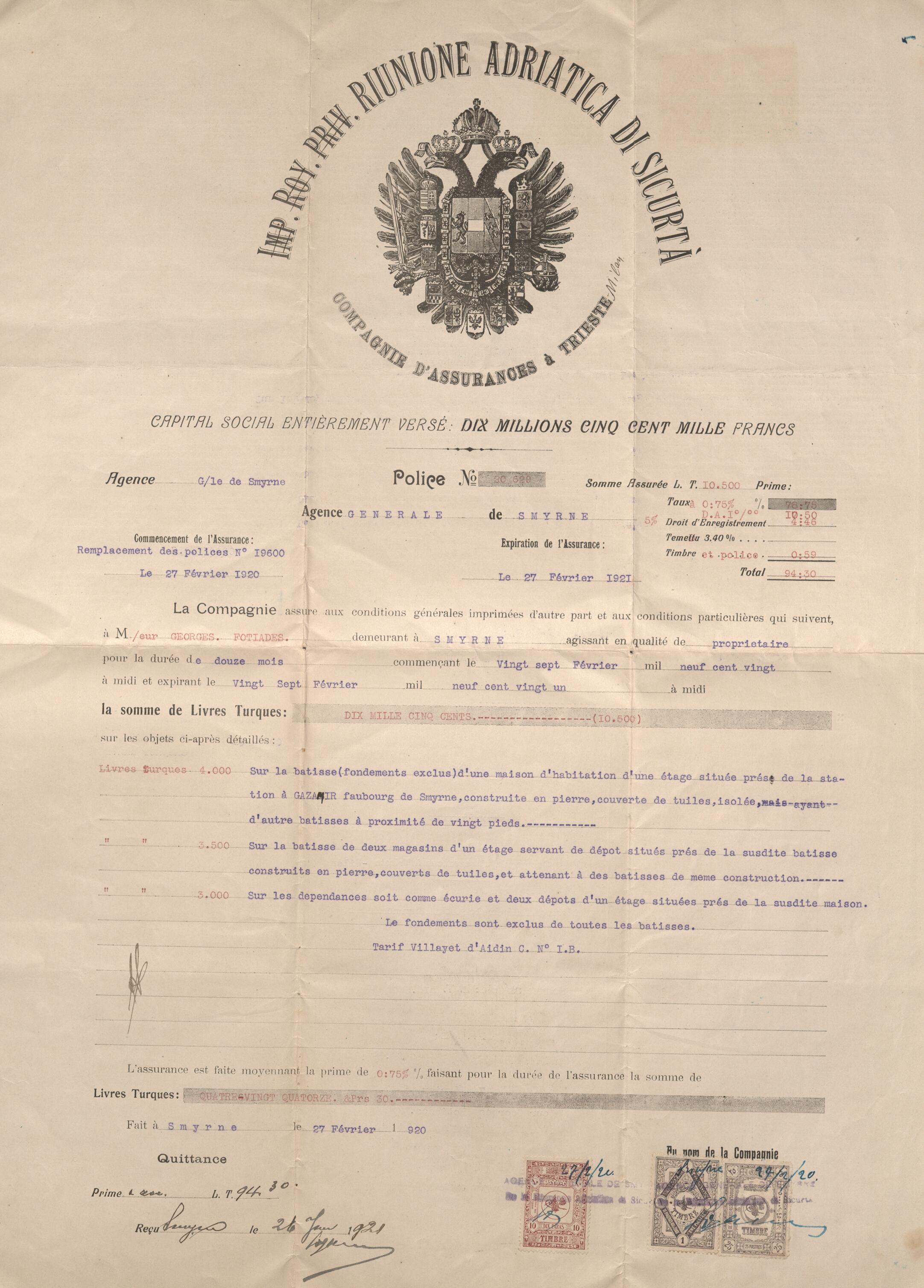 0001 (2224) - Ασφαλιστήριο συμβόλαιο περιουσίας του Γ. Φωτιάδη