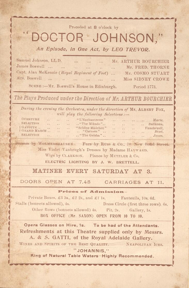 Διαφημιστική καρτέλα θεατρικής σκηνής Royal Strand Theatre