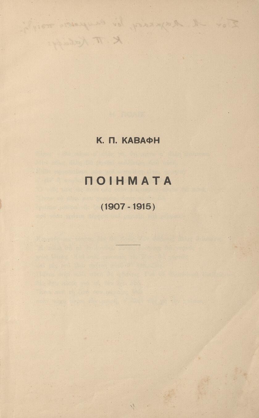 0001 (2213) - “C. P. Cavafy Poems (1907-1915)”
