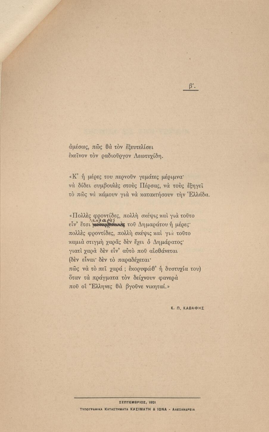 ΑΡΧΕΙΟ ΚΑΒΑΦΗ, Κ. Π.