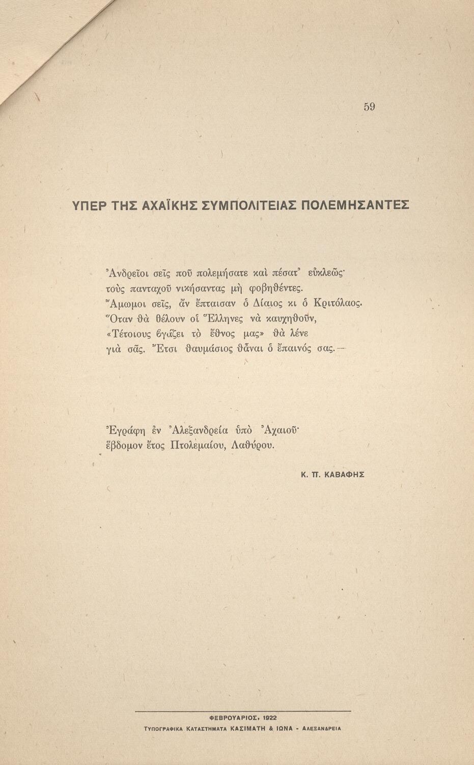 ΑΡΧΕΙΟ ΚΑΒΑΦΗ, Κ. Π.