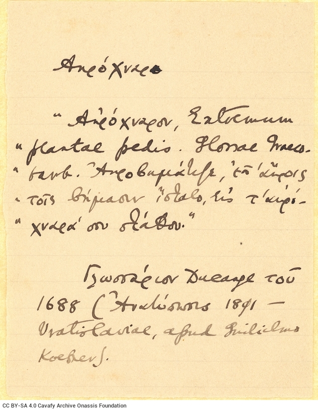 ΑΡΧΕΙΟ ΚΑΒΑΦΗ, Κ. Π.