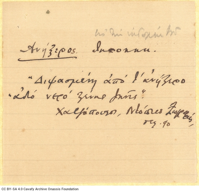 CA - CAVAFY, C. P. FONDS