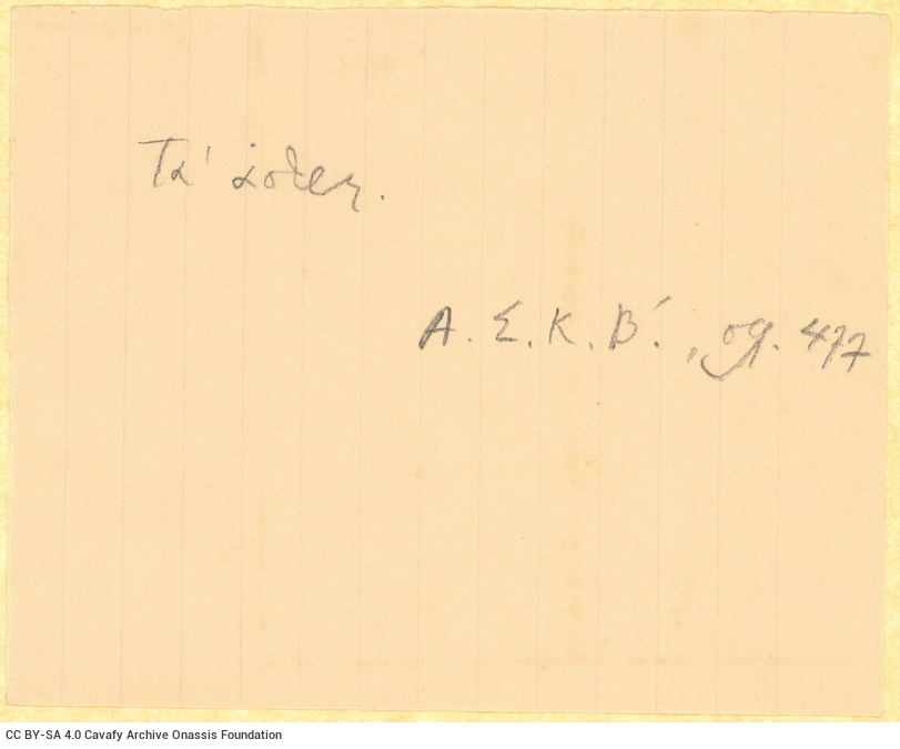 CA - ΑΡΧΕΙΟ ΚΑΒΑΦΗ, Κ. Π.