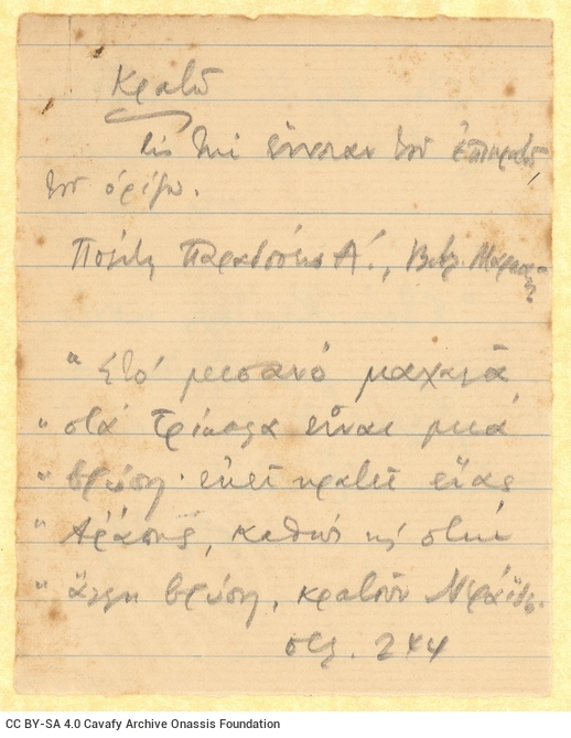 ΑΡΧΕΙΟ ΚΑΒΑΦΗ, Κ. Π.