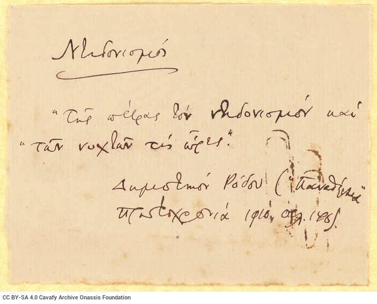 ΑΡΧΕΙΟ ΚΑΒΑΦΗ, Κ. Π.