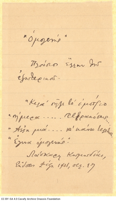 CA - CAVAFY, C. P. FONDS