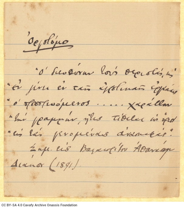ΑΡΧΕΙΟ ΚΑΒΑΦΗ, Κ. Π.