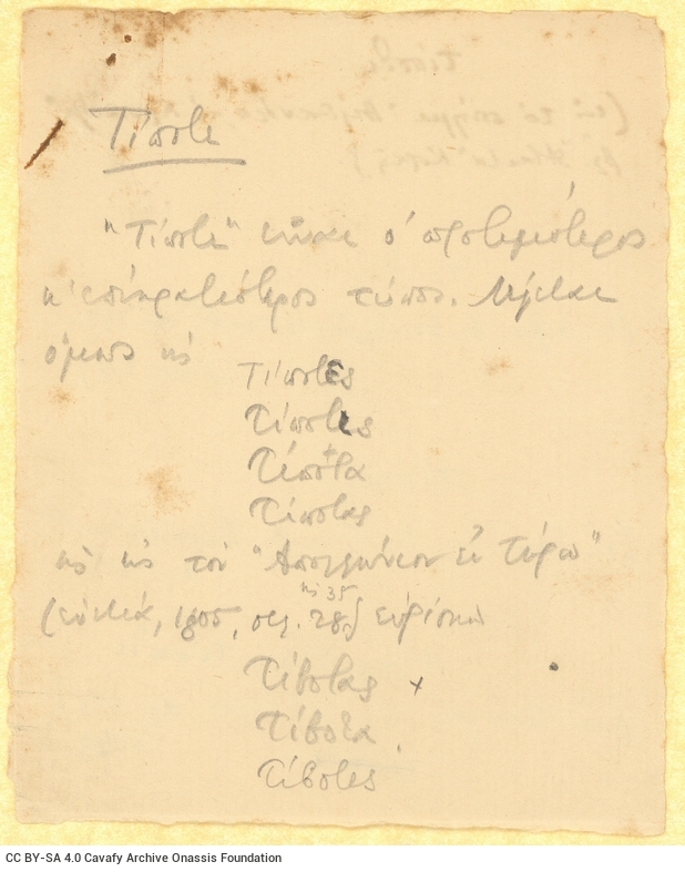 ΑΡΧΕΙΟ ΚΑΒΑΦΗ, Κ. Π.