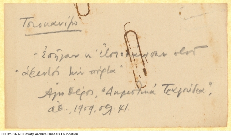CA - ΑΡΧΕΙΟ ΚΑΒΑΦΗ, Κ. Π.