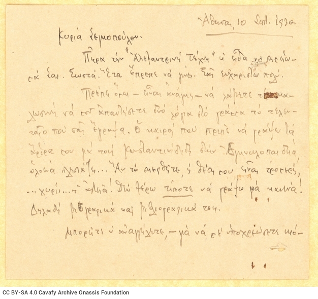 0007 (258) - Επιστολή του Τέλλου Άγρα προς τη Ρίκα Σεγκοπούλου