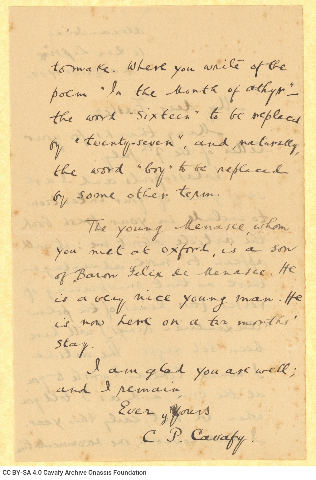 0003 (323) - Copy of a letter by Cavafy to E. M. Forster