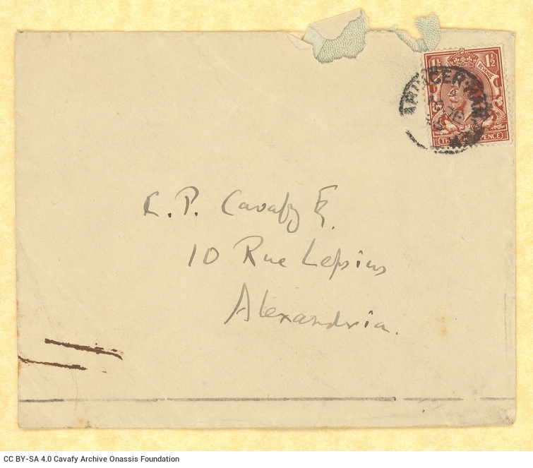 Letter by E. M. Forster to Cavafy