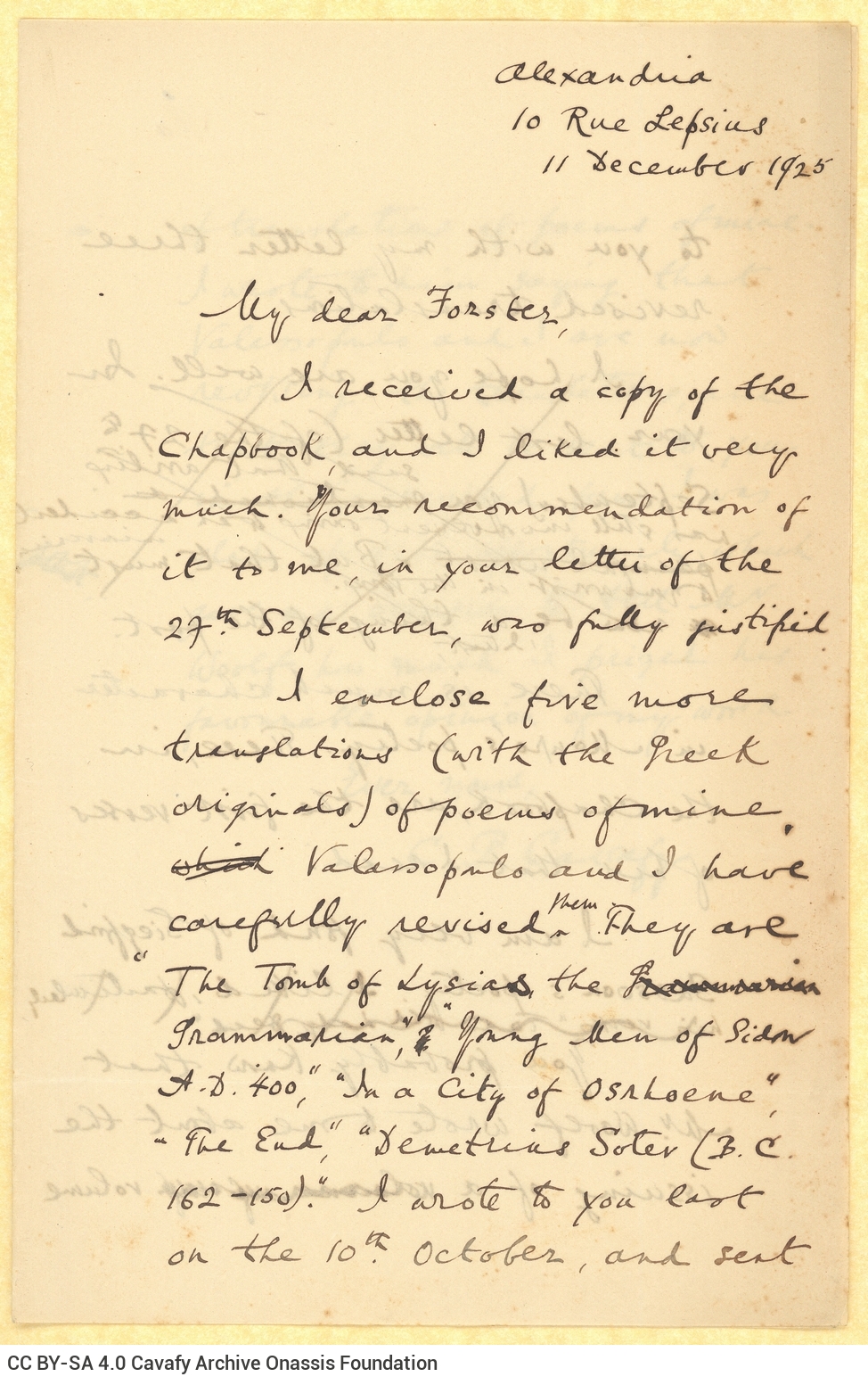 0013 (347) - Copy of a letter by Cavafy to E. M. Forster