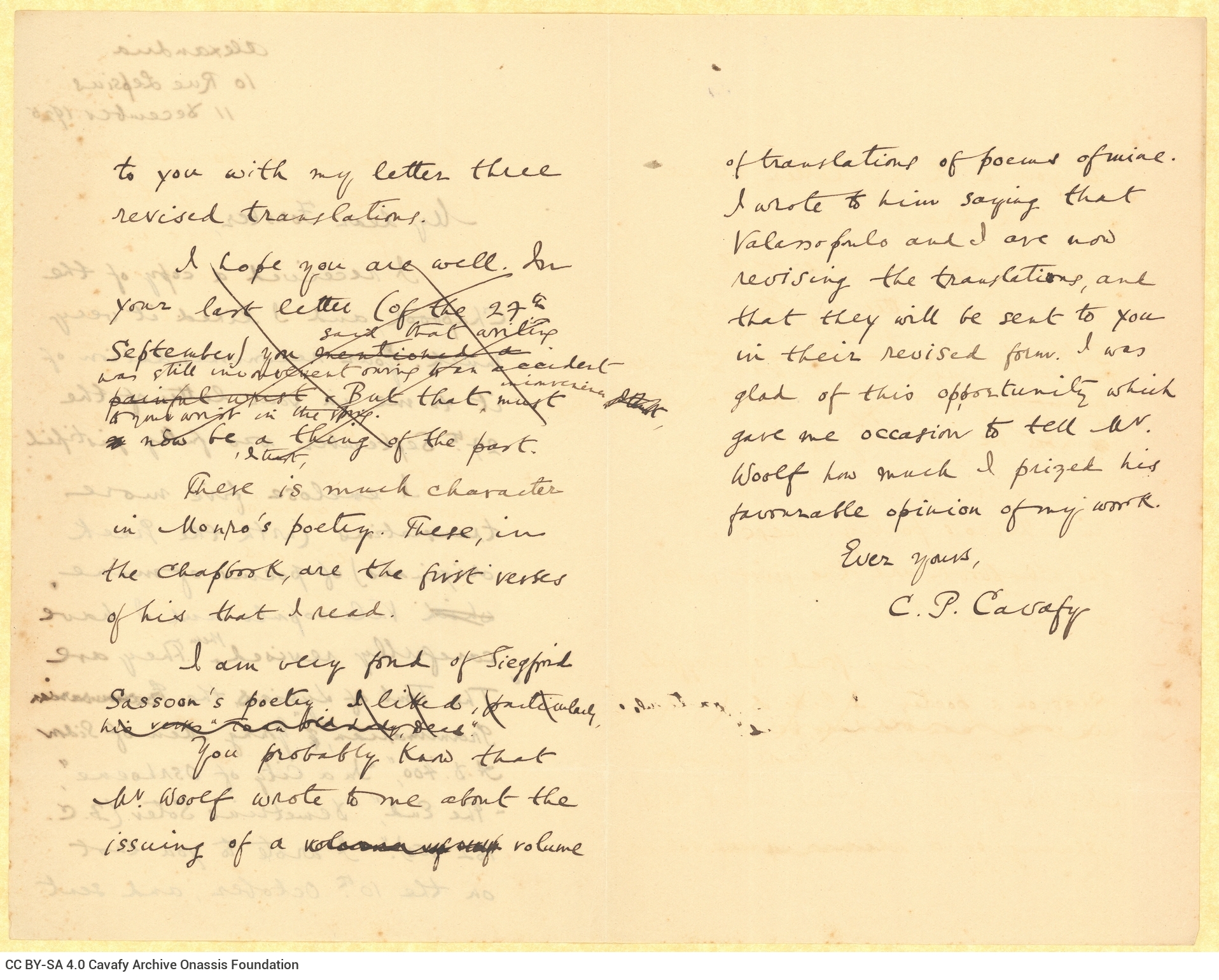 Σχέδια και αντίγραφα επιστολών του Κ. Π. Καβάφη