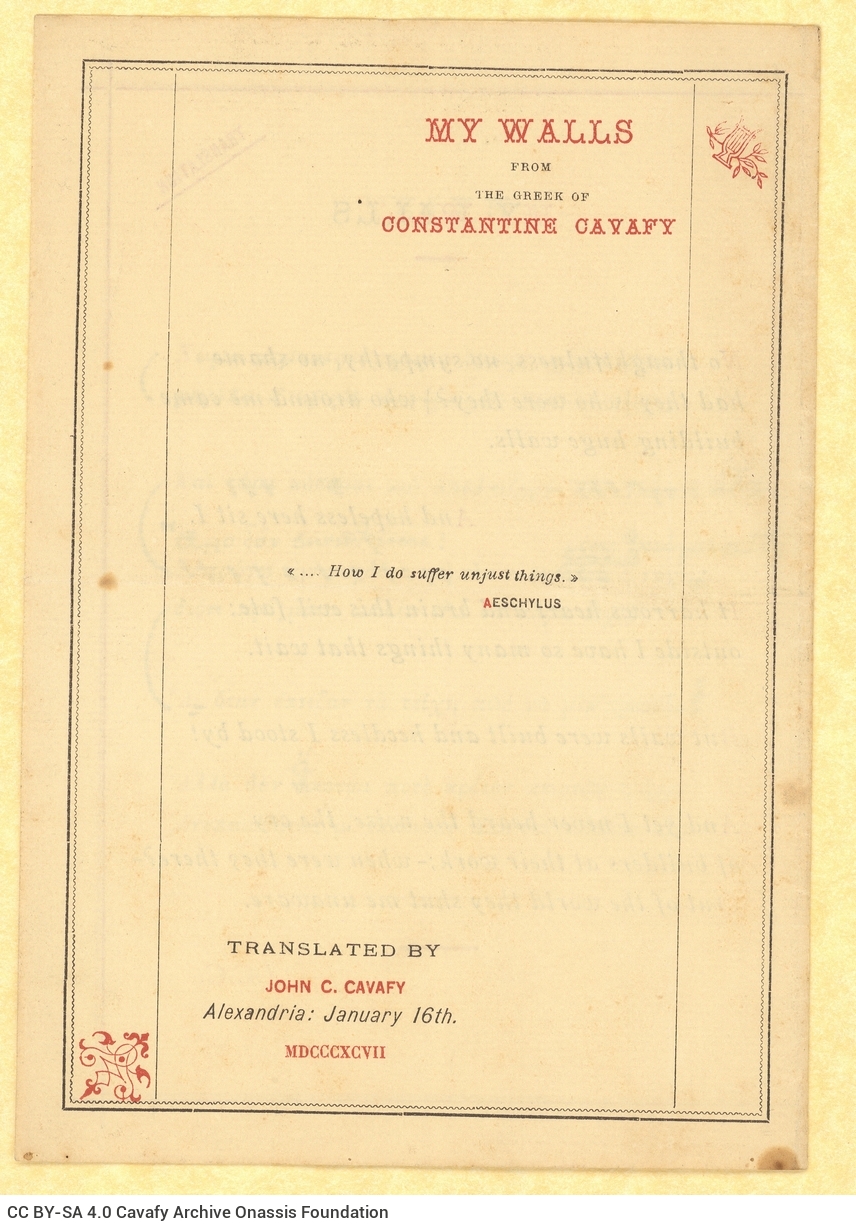CAVAFY, C. P. FONDS
