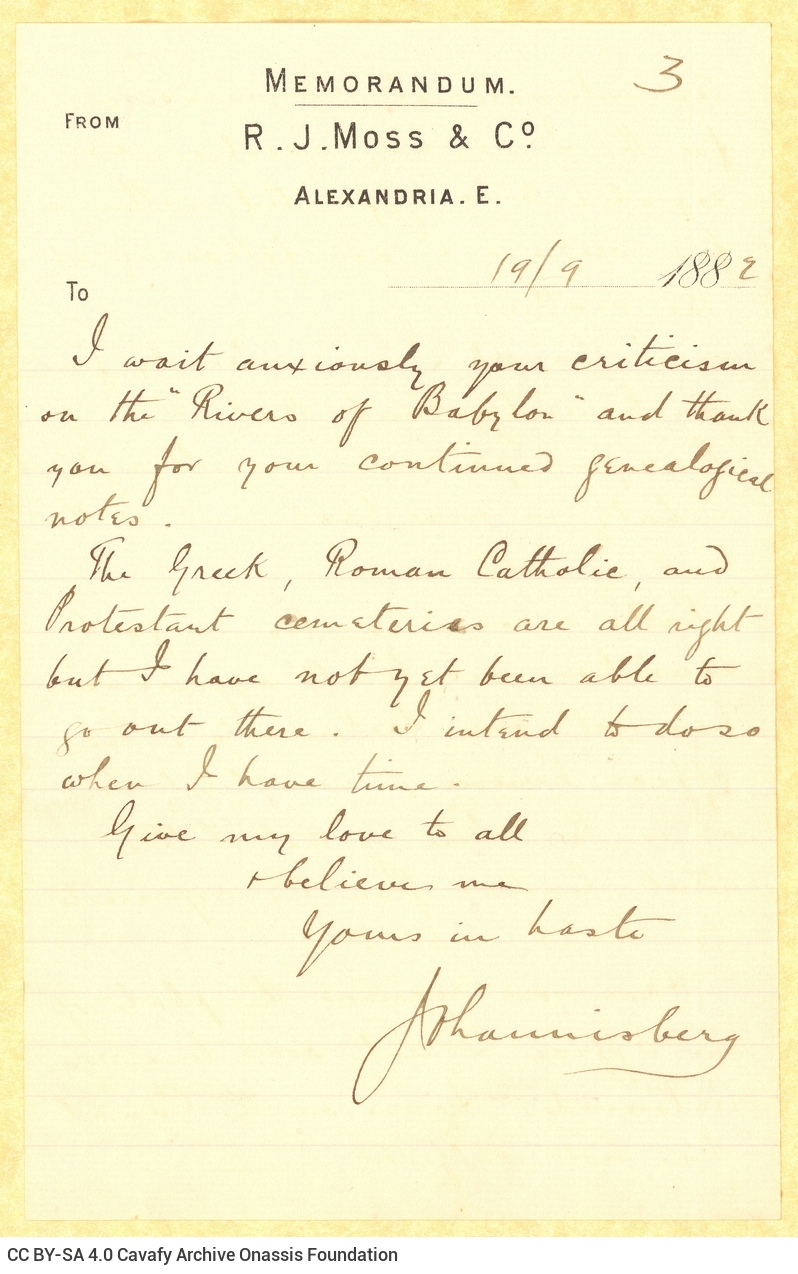Letter by John Cavafy to C. P. Cavafy