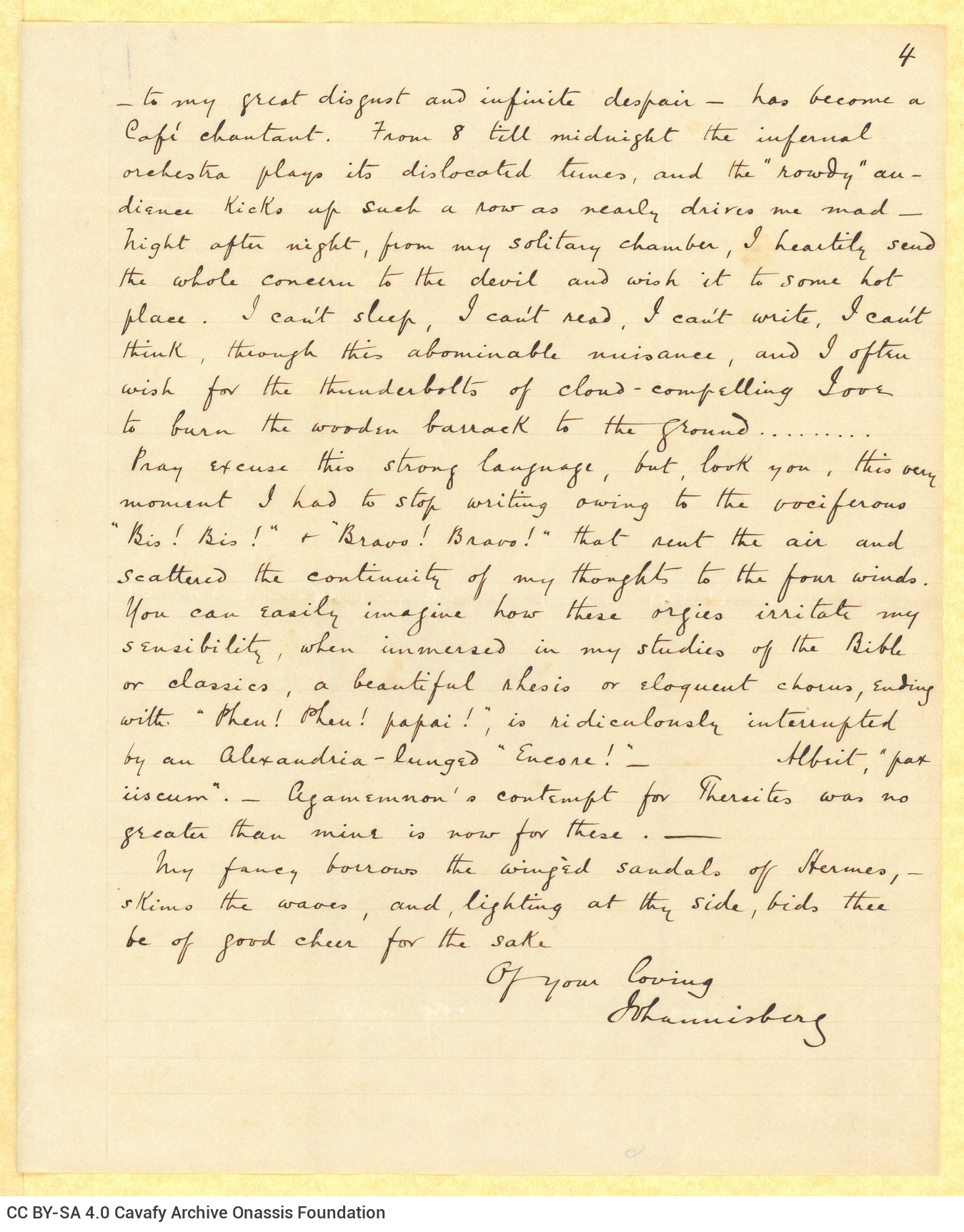 Επιστολή του John Καβάφη προς τον Κ. Π. Καβάφη