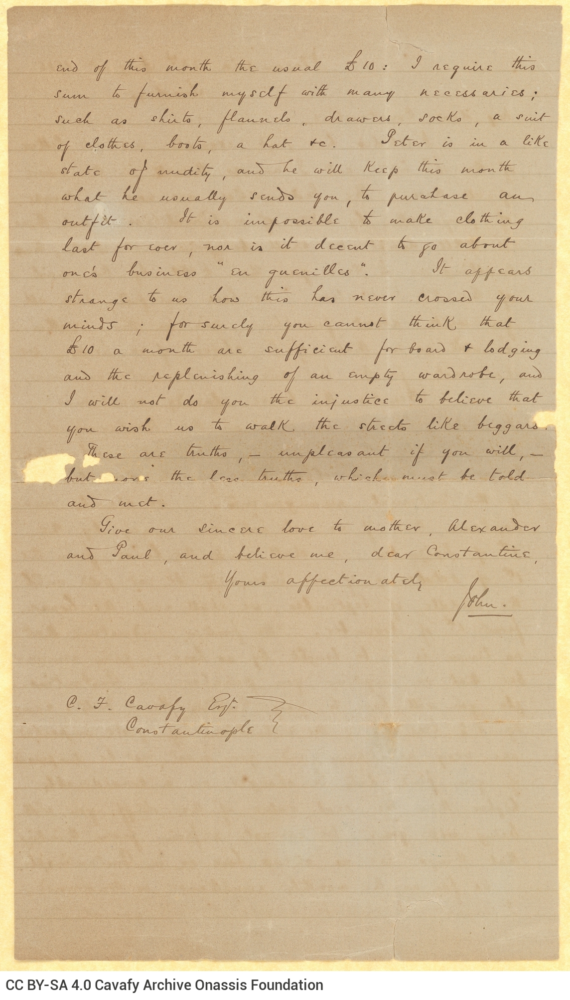 0066 (441) - Letter by John Cavafy to C. P. Cavafy