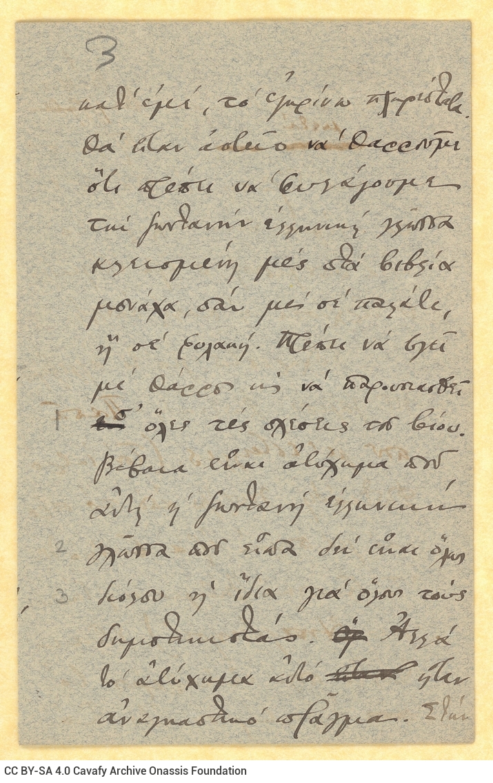 Σχέδιο επιστολής του Καβάφη προς τη Μαρίκα Τσαλίκη