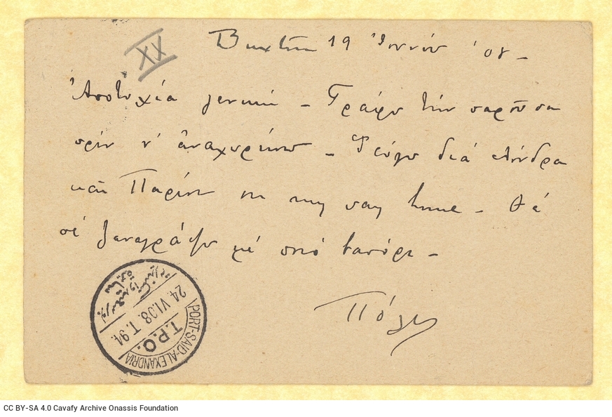 SF002 - Εισερχόμενη αλληλογραφία από τον Παύλο Καβάφη