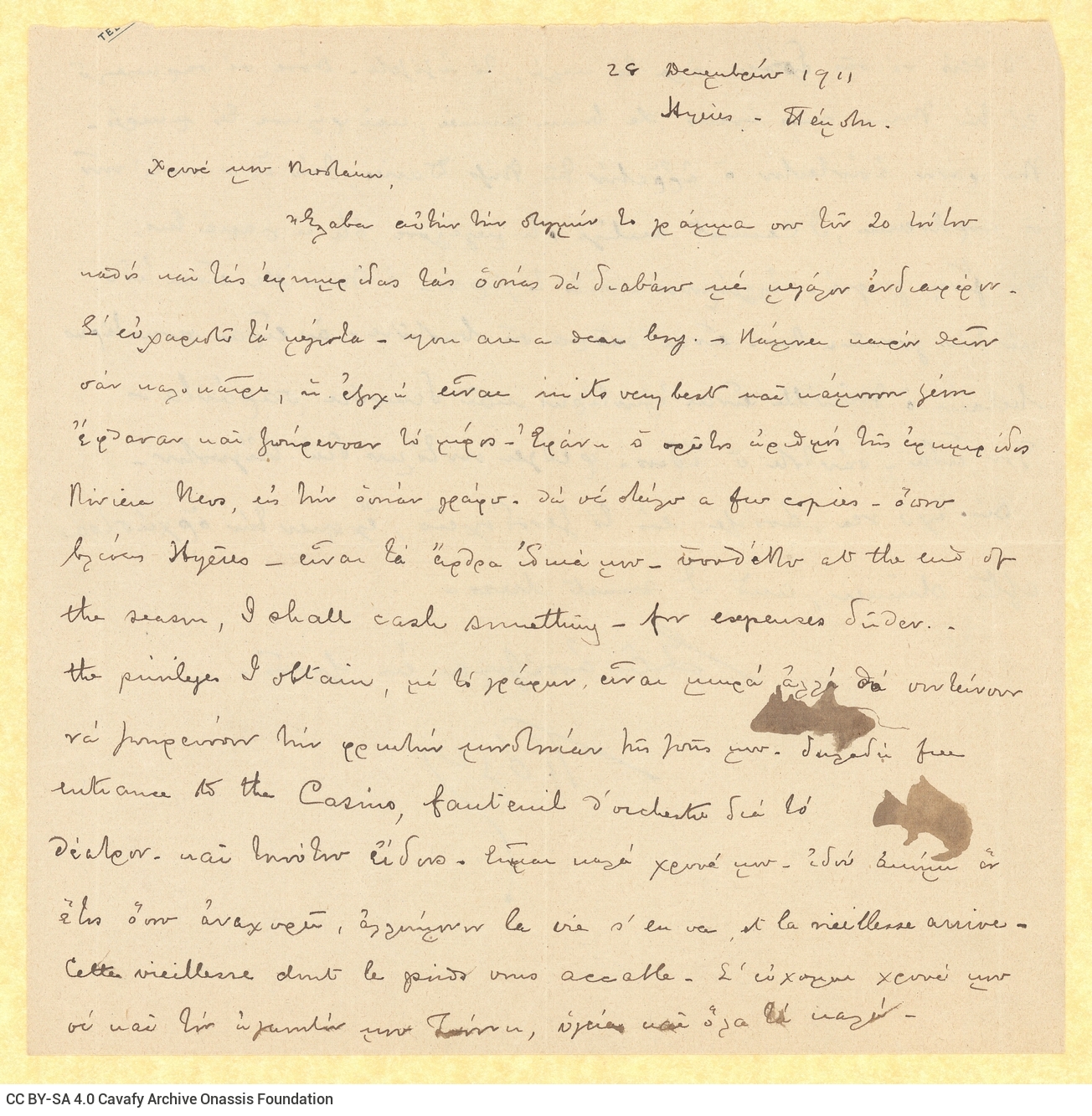 Εισερχόμενη αλληλογραφία από τον Παύλο Καβάφη