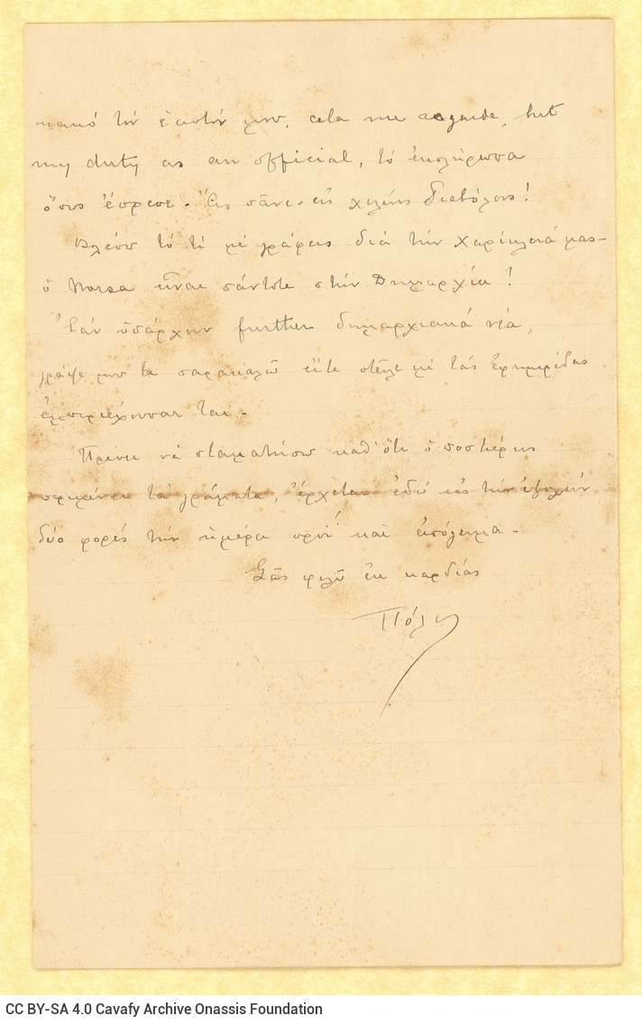 SF002 - Εισερχόμενη αλληλογραφία από τον Παύλο Καβάφη