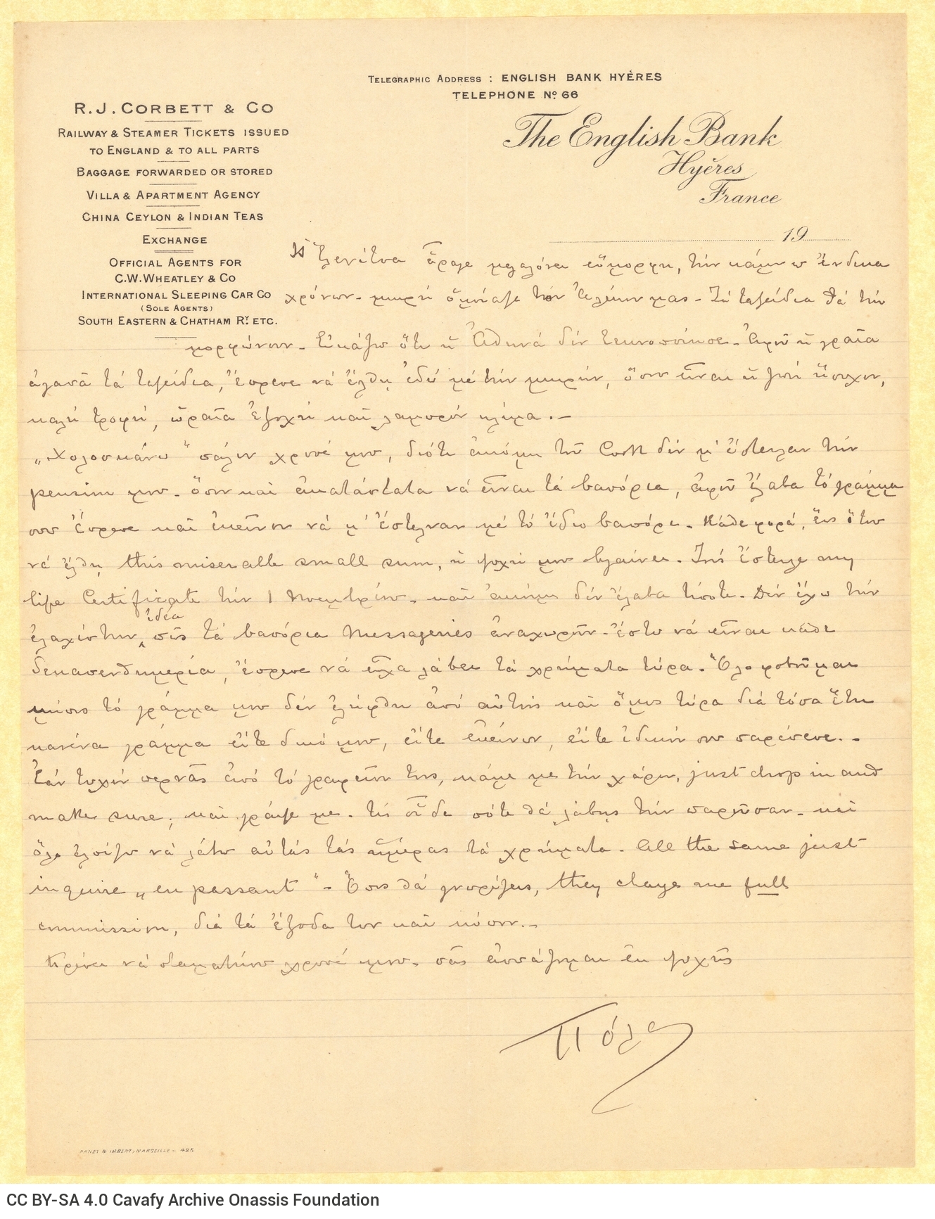 SF002 - Εισερχόμενη αλληλογραφία από τον Παύλο Καβάφη