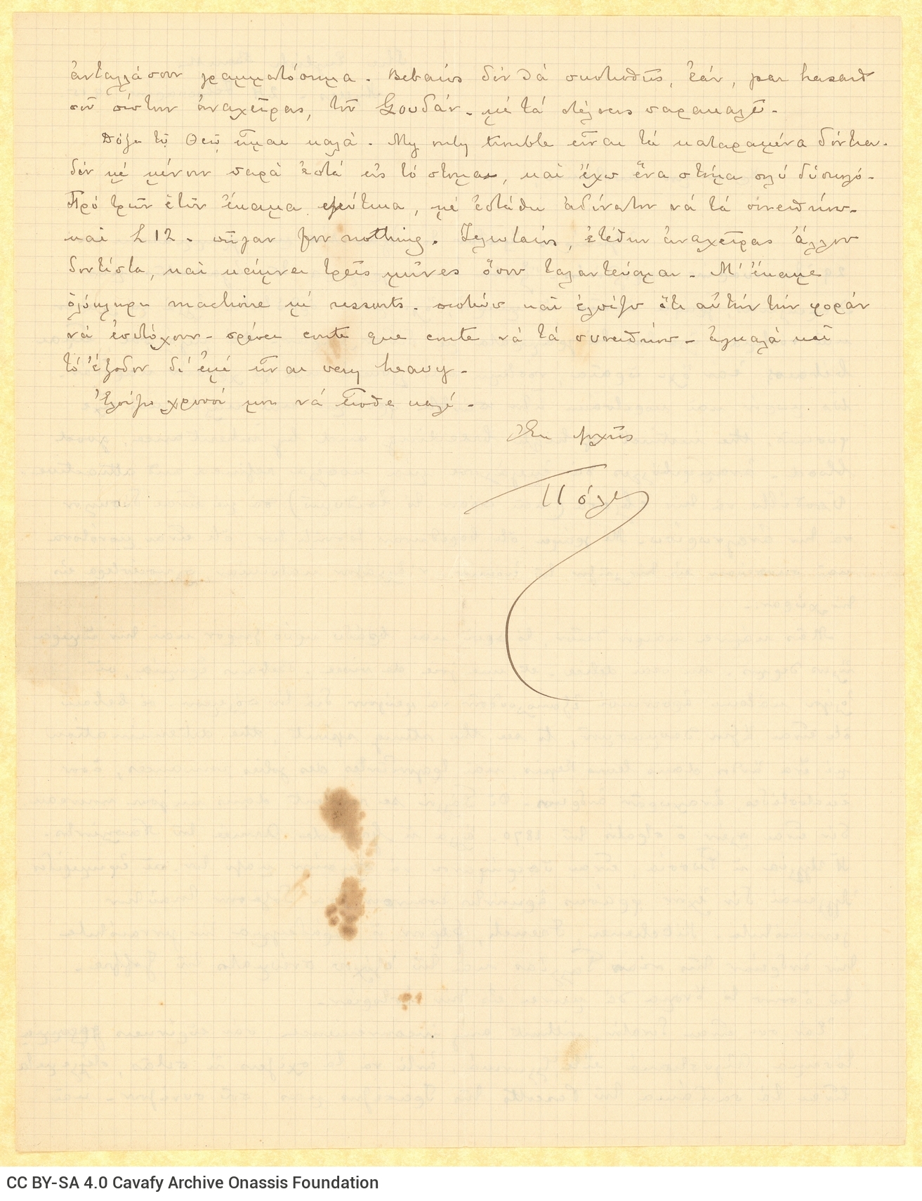 Letter by Paul Cavafy to C. P. Cavafy