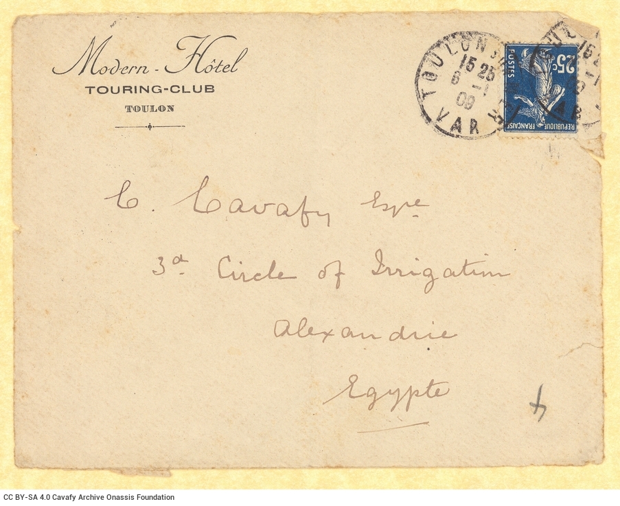 Εισερχόμενη αλληλογραφία από τον Παύλο Καβάφη