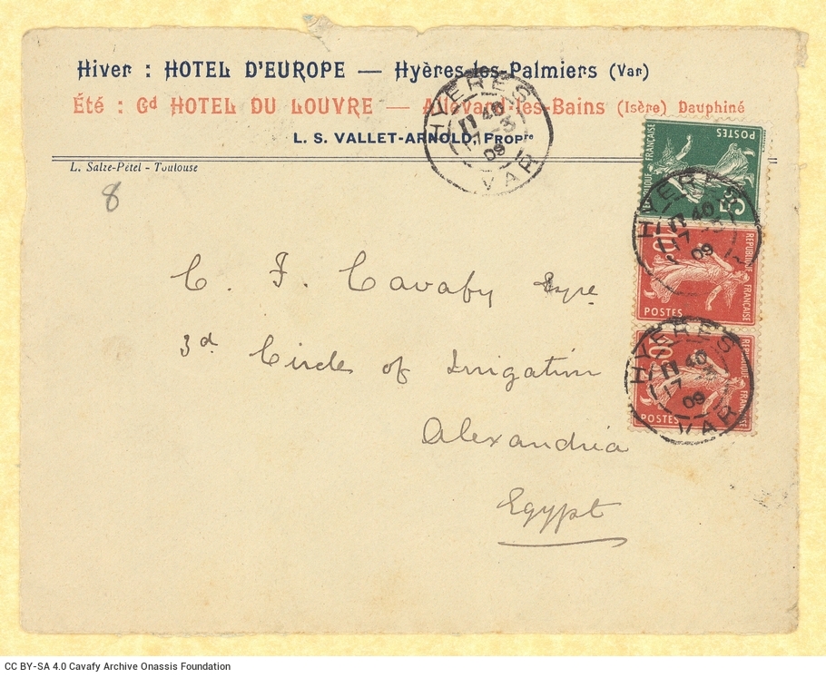 SF002 - Εισερχόμενη αλληλογραφία από τον Παύλο Καβάφη