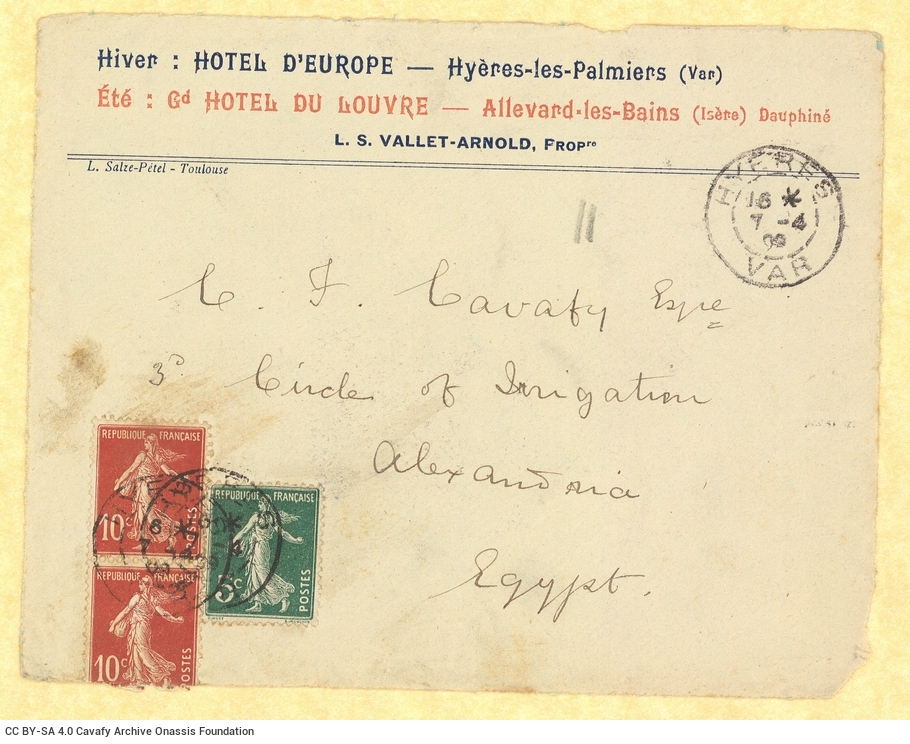 Εισερχόμενη αλληλογραφία από τον Παύλο Καβάφη
