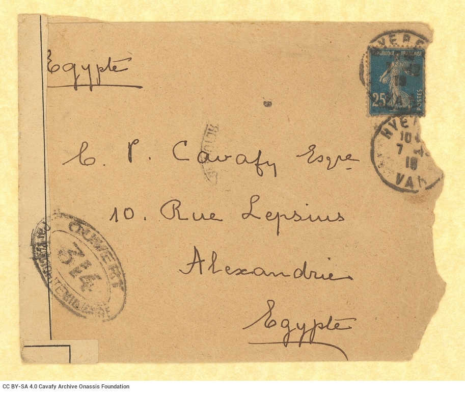 Εισερχόμενη αλληλογραφία από τον Παύλο Καβάφη