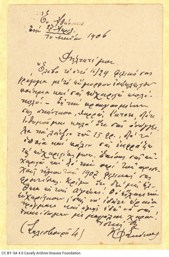 0027 (647) - Letter by K. F. Skokos to Cavafy