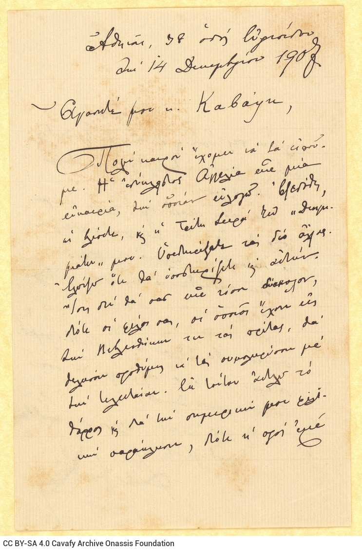 0028 (648) - Επιστολή του Γρ. Ξενόπουλου προς τον Καβάφη