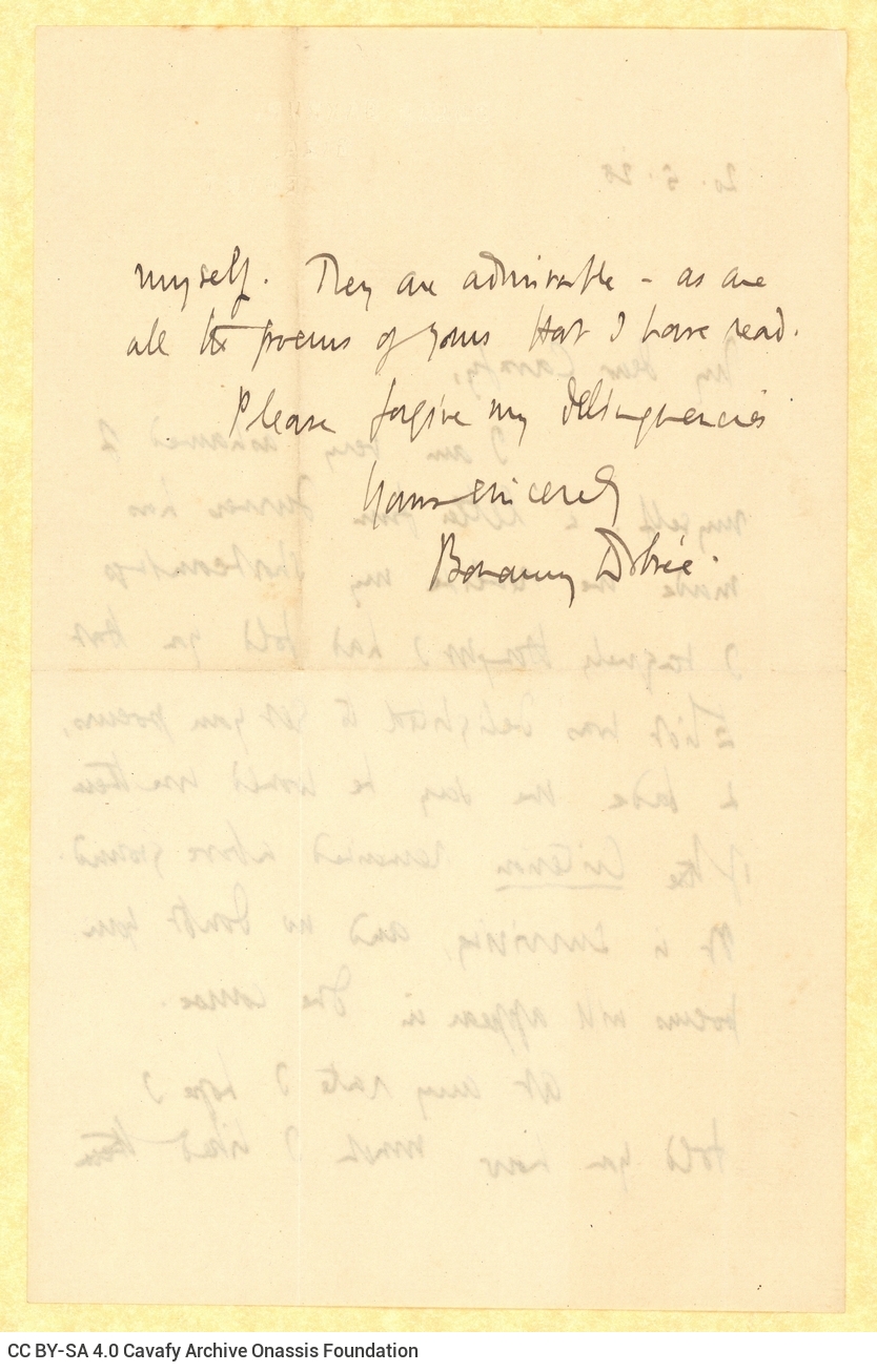 0107 (705) - Letter by B. Dobrée to Cavafy