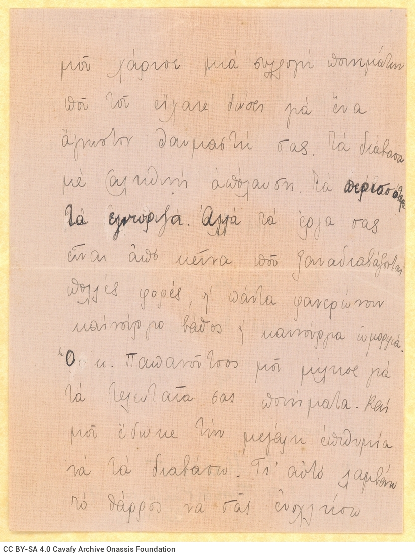 Letter by E. Maragkou to Cavafy
