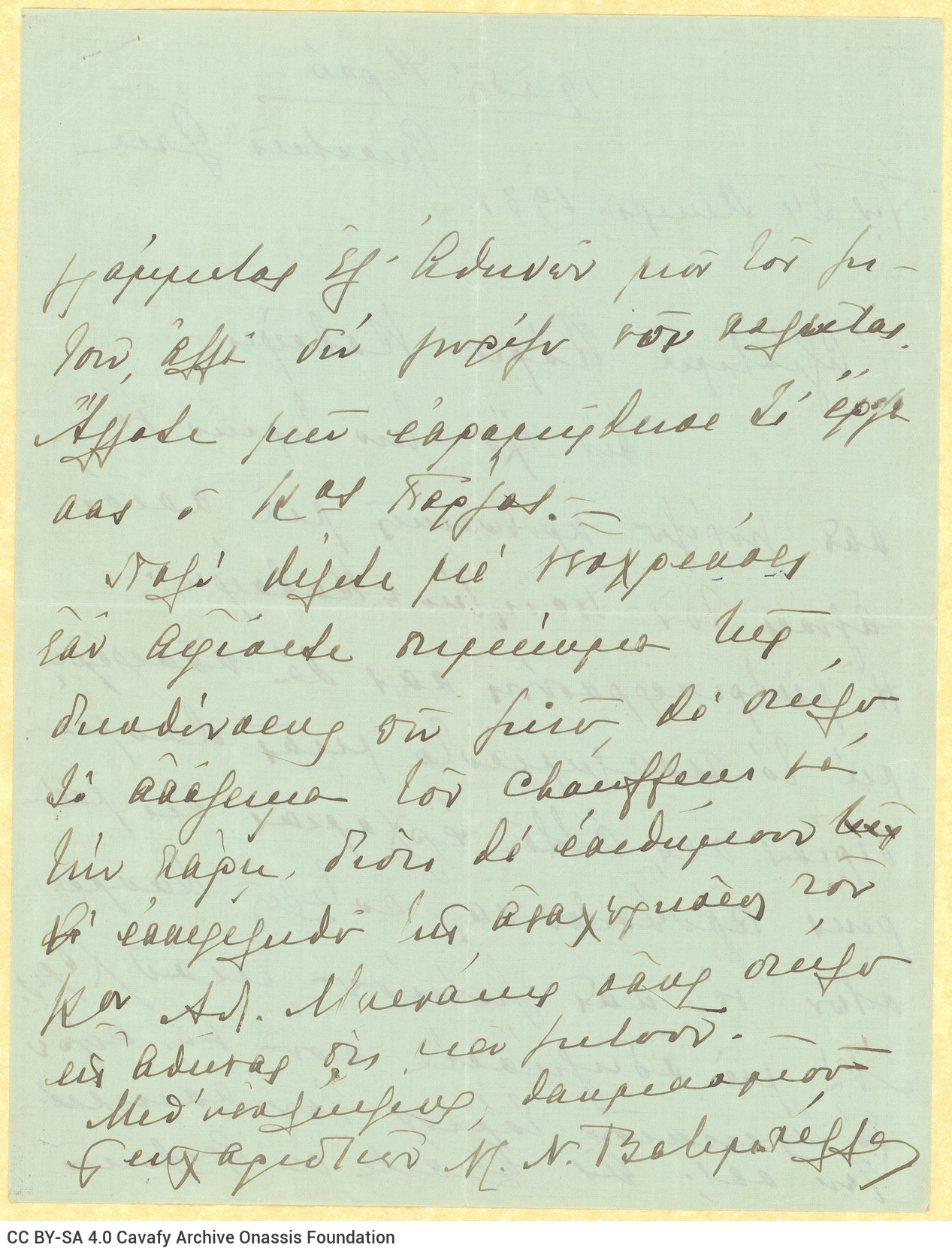 0152 (742) - Επιστολή της Μ. Ν. Βατιμπέλλα προς τον Καβάφη