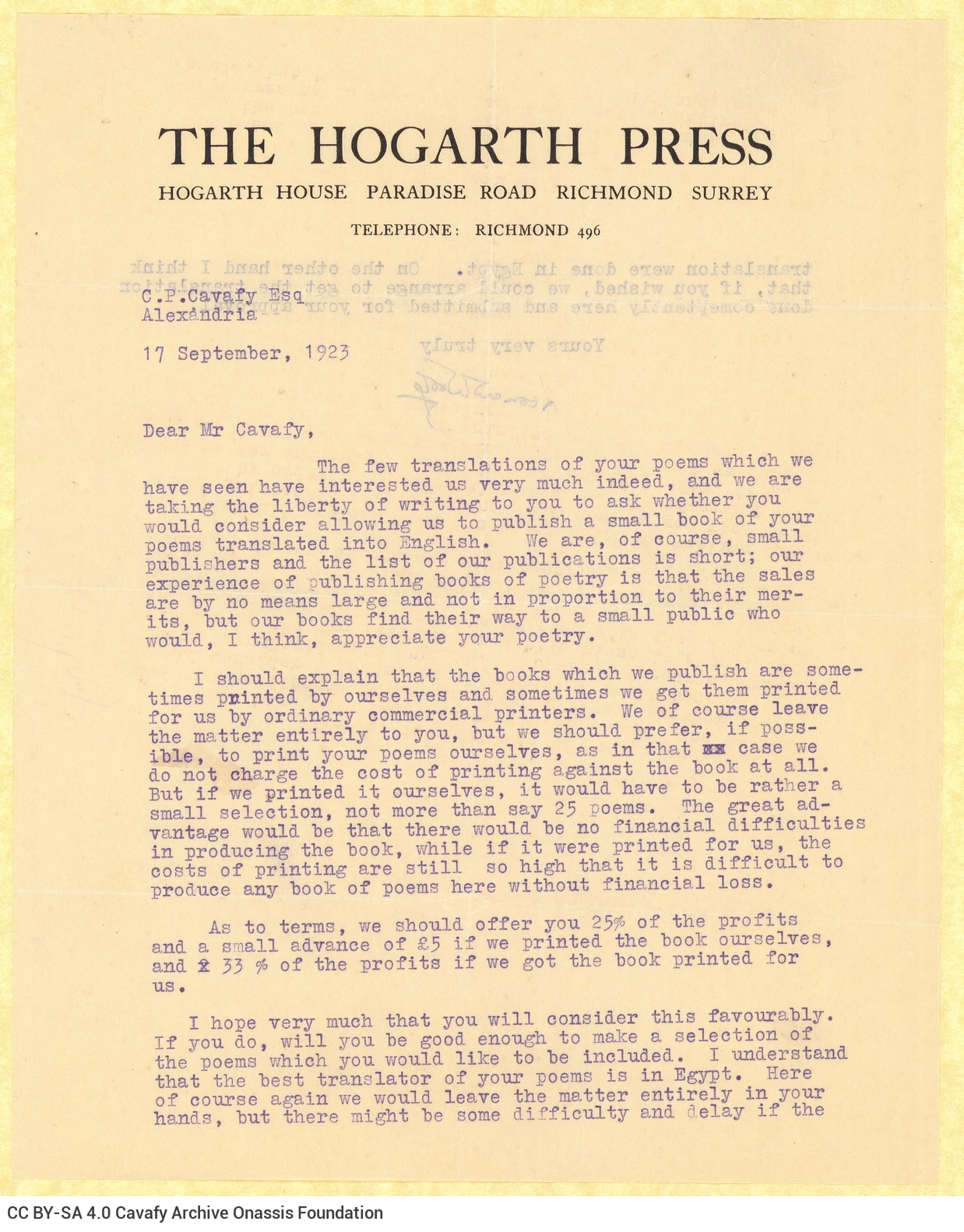 0002 (775) - Letter by Leonard Woolf to Cavafy