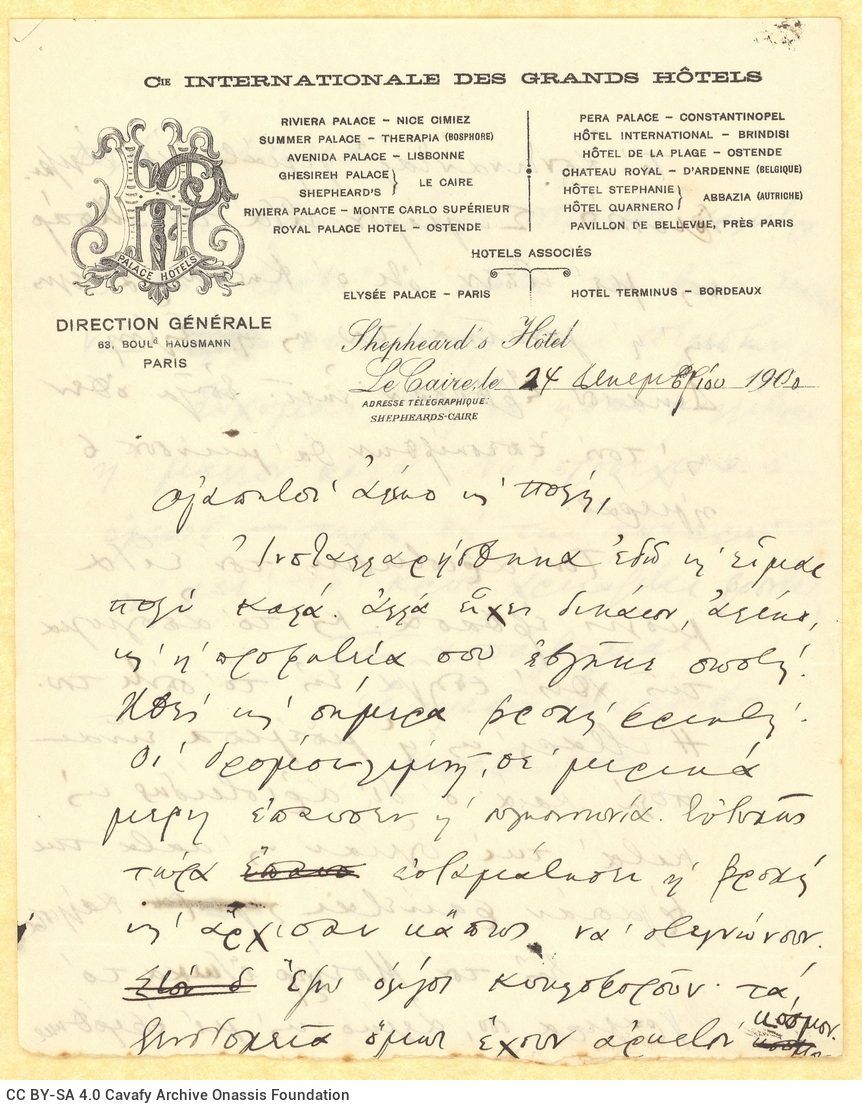 Σχέδιο επιστολής του Κ. Π. Καβάφη προς τους Αλέξανδρο και Παύλο Καβάφη