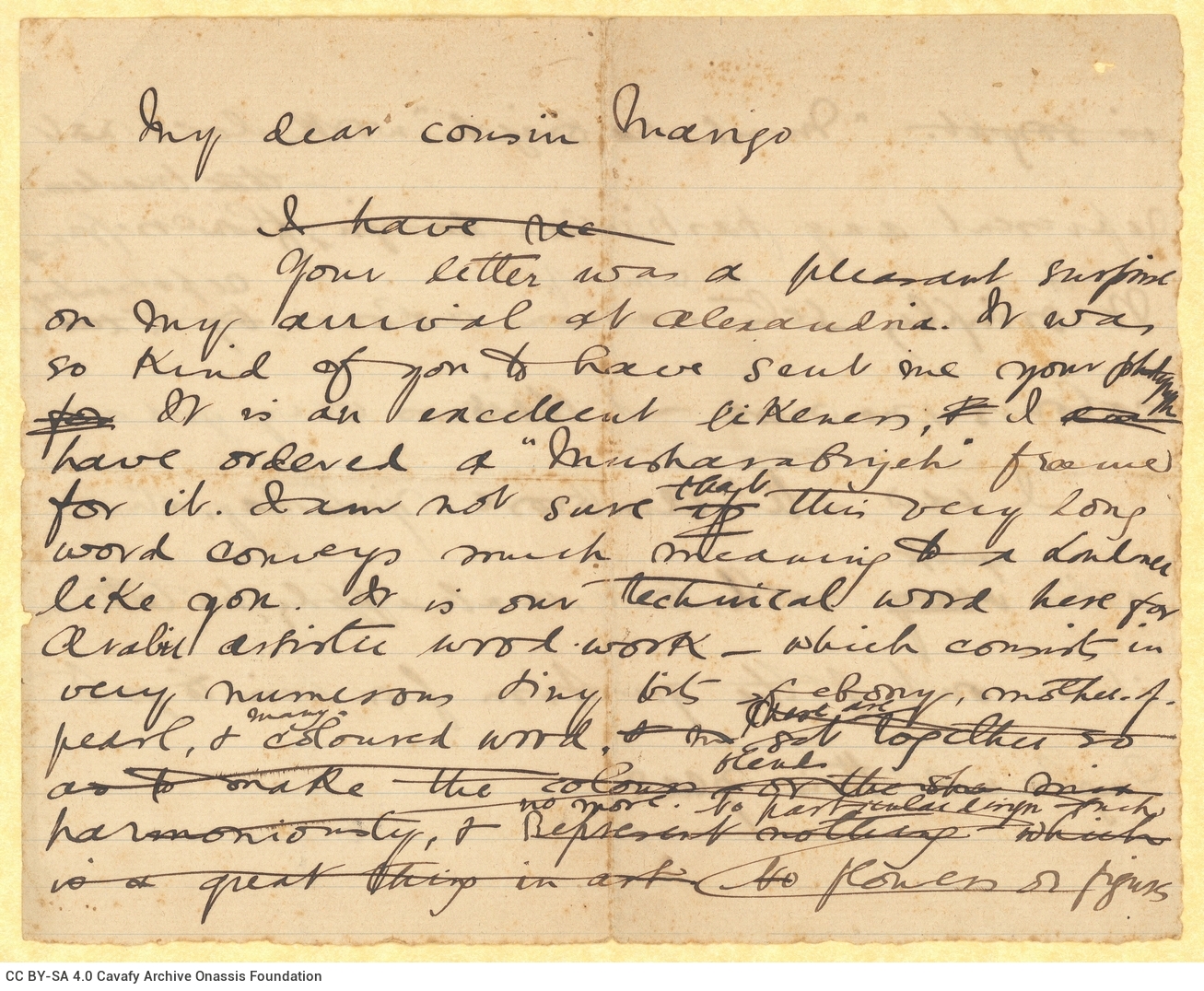 0018 (957) - Draft letter by Cavafy to M. Cavafy