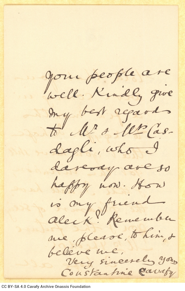 Copy of a letter by Cavafy