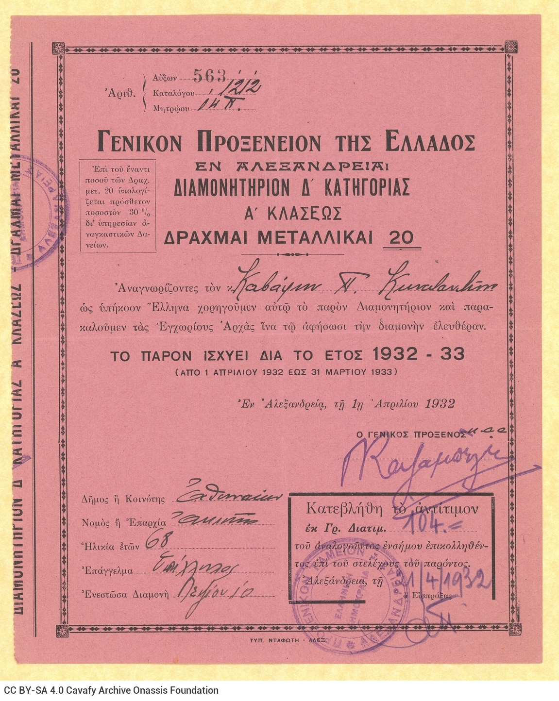 ΑΡΧΕΙΟ ΚΑΒΑΦΗ, Κ. Π.