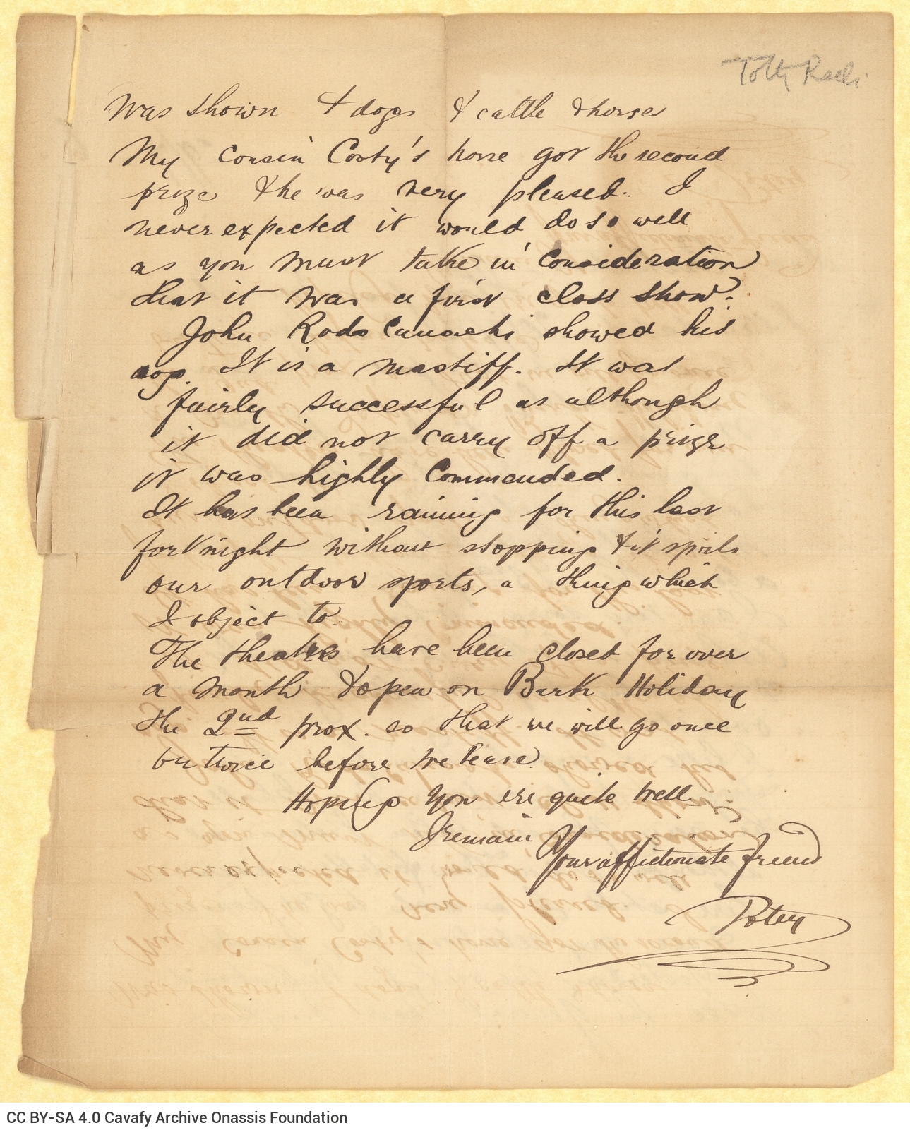 Letter by T. Ralli to Cavafy