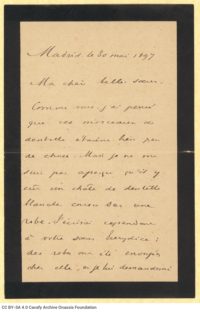 Επιστολή του L. Verhaeghe de Naeyer προς τη Χ. Καβάφη