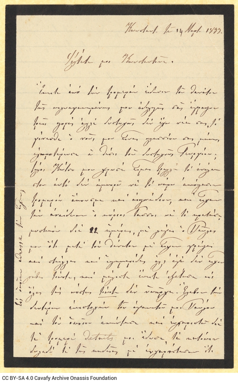 0016 (1117) - Letter by Euvoulia Papalamprinou to Cavafy