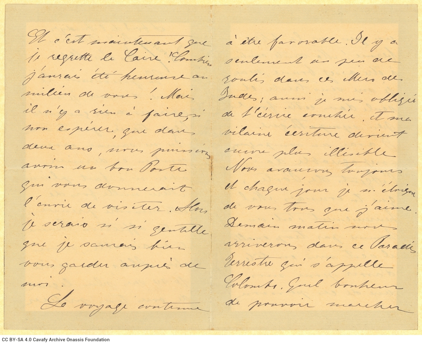 Letter by Sévastie Verhaeghe de Naeyer to Alexandros Cavafy