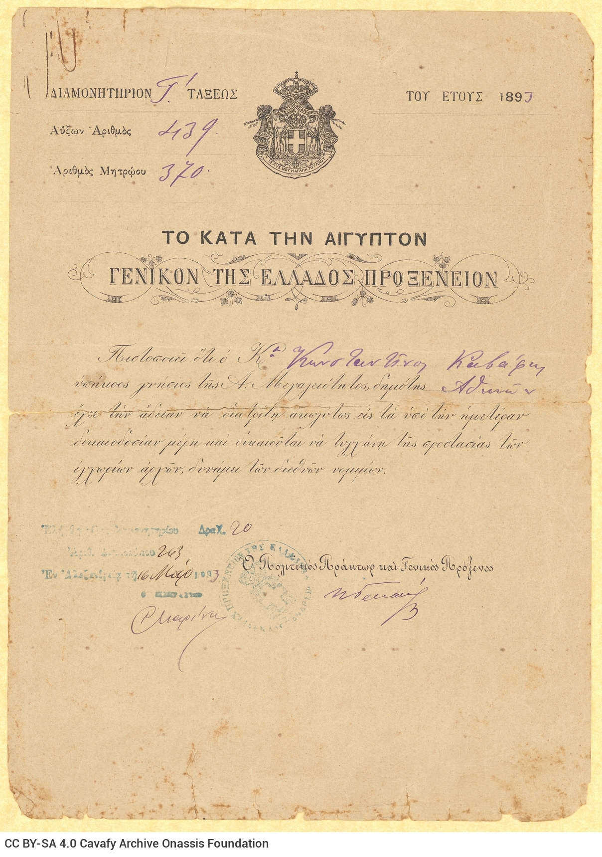 CA - ΑΡΧΕΙΟ ΚΑΒΑΦΗ, Κ. Π.